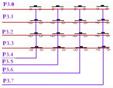 当无按键闭合时,P3.0~P3.3与P3.4~P3.7之间开路。当有键闭合时,与闭合键相连的两条I/O口线之间短路。