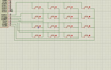,它是用四条I/O线作为行线,四条I/O线作为列线组成的键盘。在行线和列线的每个交叉点上设置一个按键。这样键盘上按键的个数就为4*4个。这种行列式键盘结构能有效地提高单片机系统中I/O口的利用率。最常见的键盘布局一般由16个按键组成,在单片机中正好可以用一个P口实现16个按键功能,这也是在单片机系统中最常用的形式,4*4矩阵键盘的内部电路如下图所示。