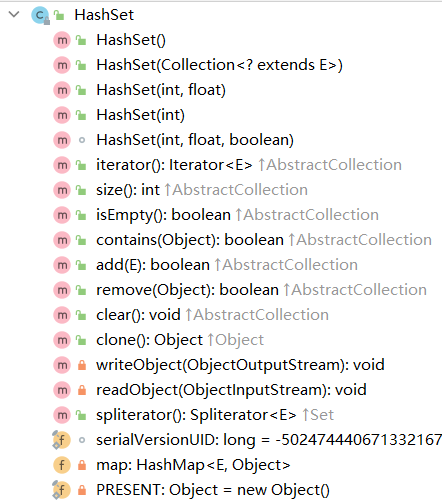 几乎所有的方法都调用HashMap的方法,可以这样说:HashSet就是一个只是用到Map键值对中的键的HashMap。