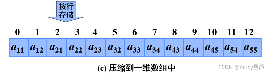 ,先存储行号较小的元素,行号相同者先存储列号较小的元素。