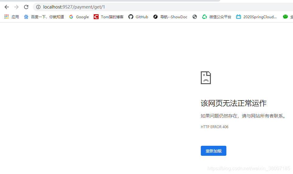 可以看到配置之后就不可以访问了,像这个After,我们就可以上线新功能的时候使用,比如你公司上线是在晚上10点上线,你可以提前上线,然后等到设置的时间再生效。那我们测试一下没有配置After断言的payment/lb的方法,看看能否访问成功,如下图: