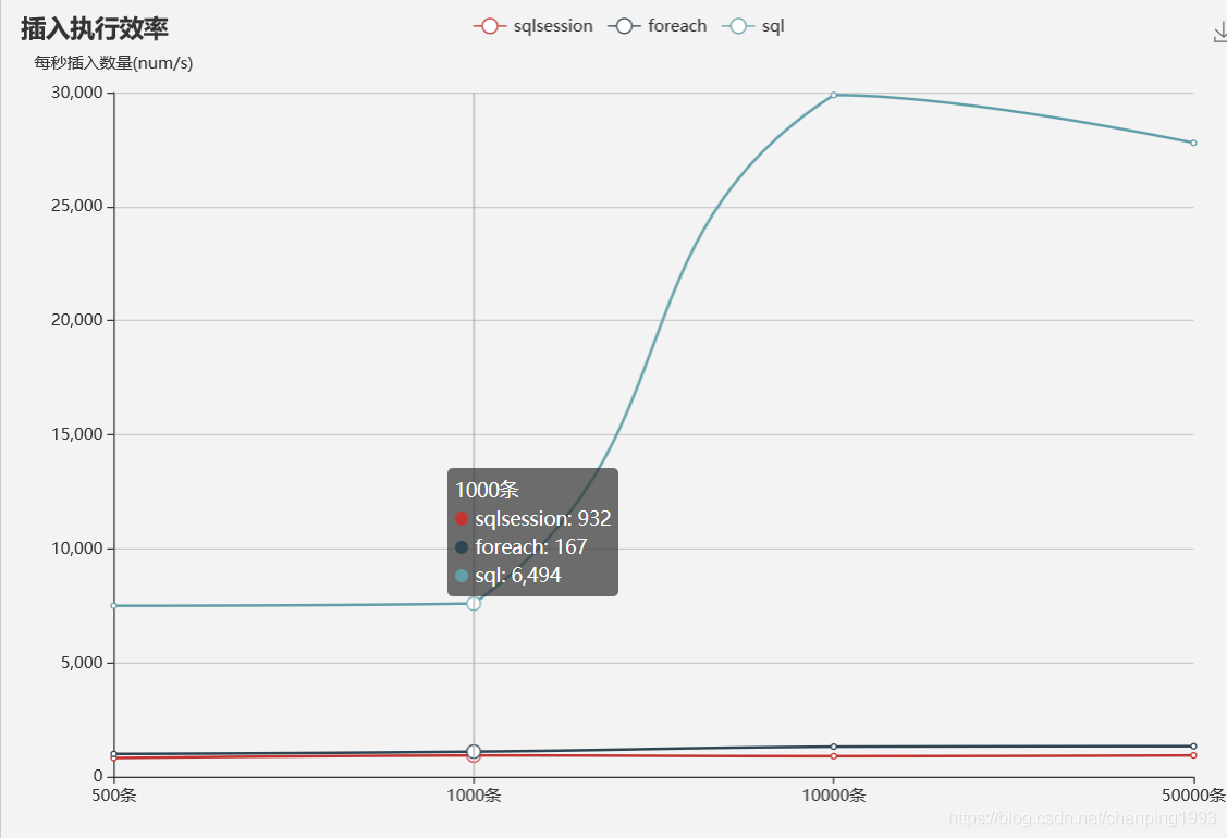 sql插入的效率最高,sqlsession次之,mybatis框架foreach插入效率最低。