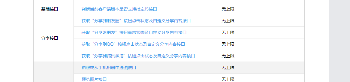 备注:checkJsApi接口是客户端6.0.2新引入的一个预留接口,第一期开放的接口均可不使用checkJsApi来检测。