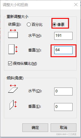 点击图片右键 选择重新调整大小,选择像素和垂直为64,水平应为128,但是自动调整为191先不用管。