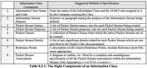 Information Class 是用于创建 information stream 的规范,它描述了其中每一个packet stream 的意图和结构。