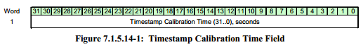 calibrated time indicator : ‘1’ 指示时间戳已经同步至外部参考源上,‘0’指示时间戳是free running,可能不精确。