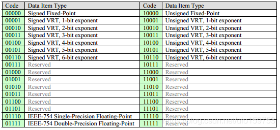 Data Item Format :5bit数据用来指示data item 中的数据类型