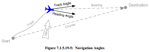 下图为航向角和轨道角的示意图,航向角表示飞机头部所对的角度,轨迹角度表示的是实际航行轨迹的切线方向角度,