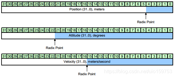 Speed Over Ground :地面速度,32bit 16位定点小数,单位是m/s 范围从0到65636m/s ,分辨率为1.5e-5m/s 。