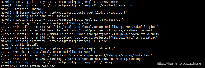 [root@localhost postgresql-11.4]# make && make install