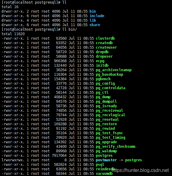 [root@localhost ~]# cd /usr/local/postgresql/