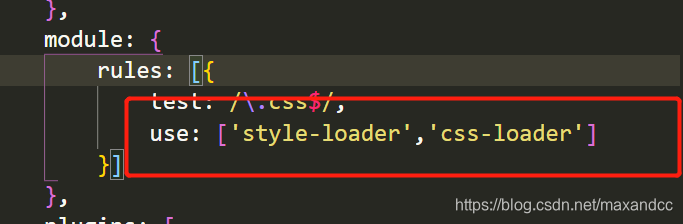 注意顺序,在使用loader的时候webpack会从数组的右向左←来加载loader,所以要把css-loader放在右边。