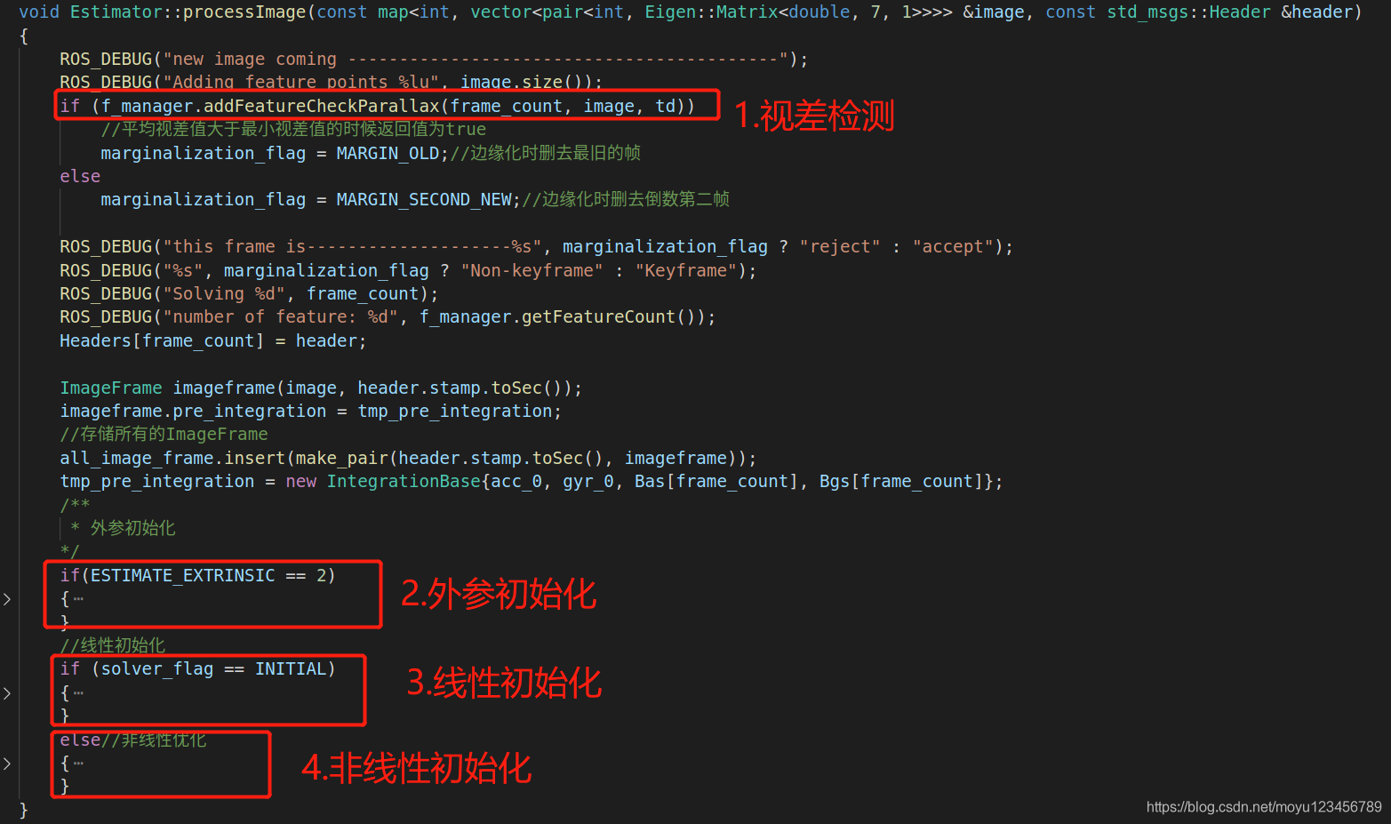 返回true后,在processImage中会将marginalization_flag设置为MARGIN_OLD,我们后边可以重点关注一下marginalization_flag值为MARGIN_OLD时的代码操作
