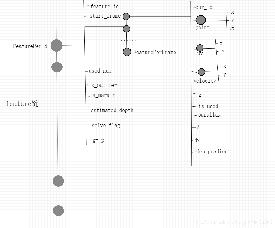 //feature是个list类型,里边每个元素类型为FeaturePerId,feature_per_frame表示每个FeaturePerId类型元素