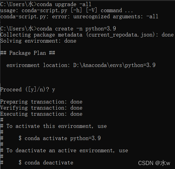 9、打开cmd界面,根据所需的python版本来进行创建环境,这里以3.9版本为例: