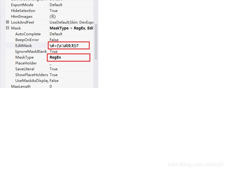 打开textedit的属性面板,设置红色框框的属性。“EditMask”属性是正则表达式。d{0, 5}的意思是小数点后面有5位数字。