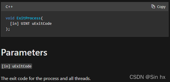 ExitProcess也只有一个参数,代表进程退出代码。