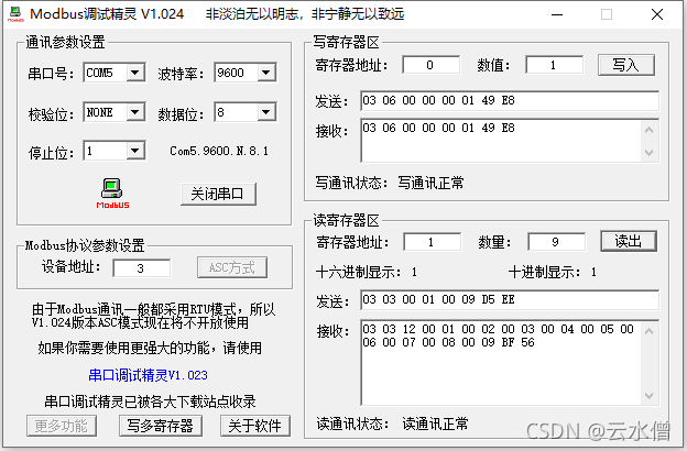 - 串口通信:波特率:9600 数据位:8 校验位:无 停止位:1