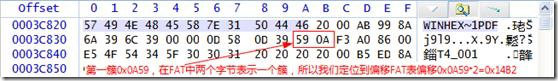 OK,Winhex教程.pdf的簇范围为:0xA59~0xB66 (2649 ~ 2918簇)