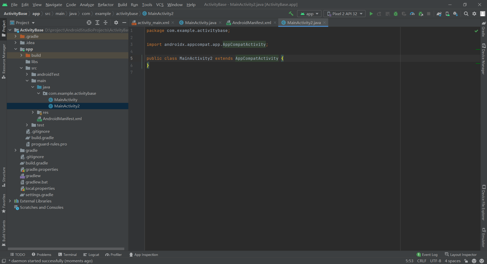 但为了更清楚地了解activity地架构,我们一个文件一个文件的来创建,先创建一个