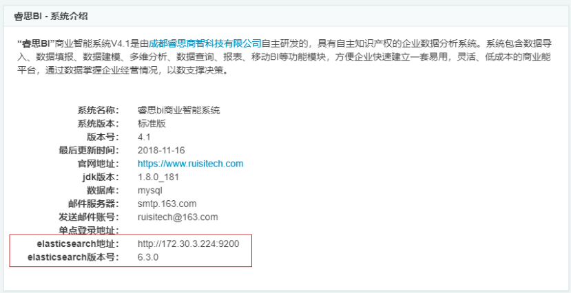 2.配置完成后,重启系统,进入页面后能看到配置的ElasticSearch地址已经成功,如下图: