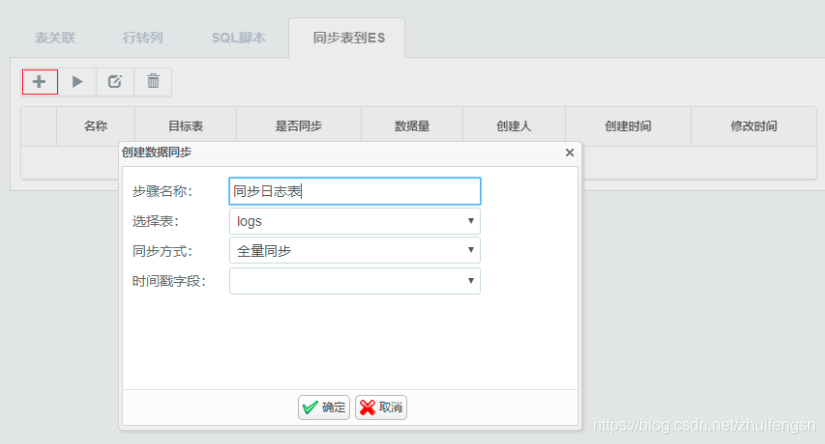 4.选择需要同步的表,录入步骤名称等信息,点击
