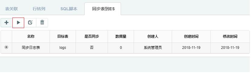 功能。此功能主要实现存放在mysql中的业务数据加载到ElasticSearch中,方便其他功能进行查询。点击