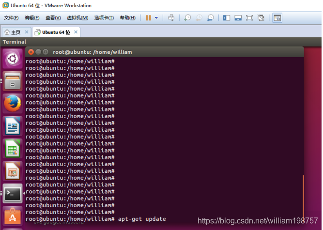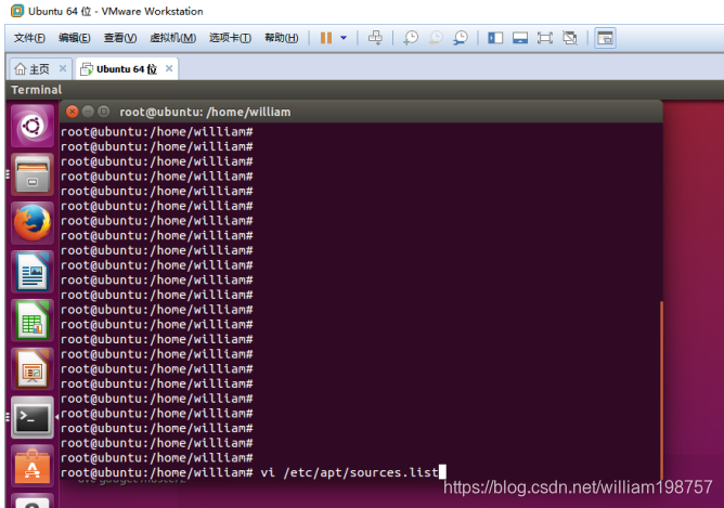源码下载后,放到虚拟机中,在虚拟机用使用快捷键 ctrl+alt+t,打开teminal,然后cd到源码目录,如下图,笔者源码位置在/home/william下,