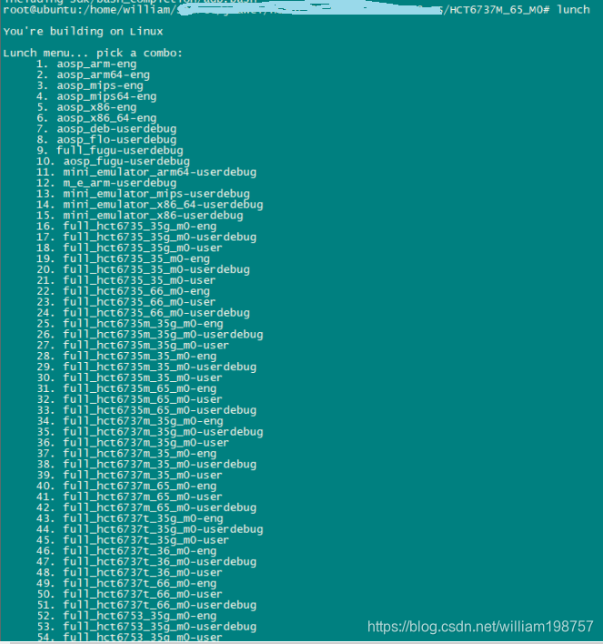 - Step4 因为我们的模块支持全网通,这里选择工程40(eng是开发版本),直接输入数字40即可,如下,如果输入错误也没有关系,ctrl + C退出再执行lunch命令就可以;
