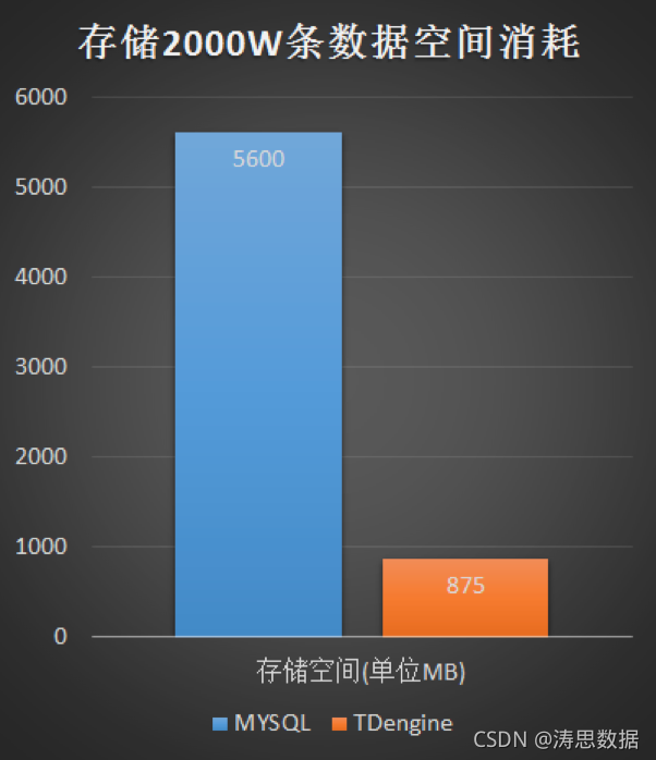 下图是插入2000万条数据之后,MySQL和TDengine占用的磁盘空间对比情况。