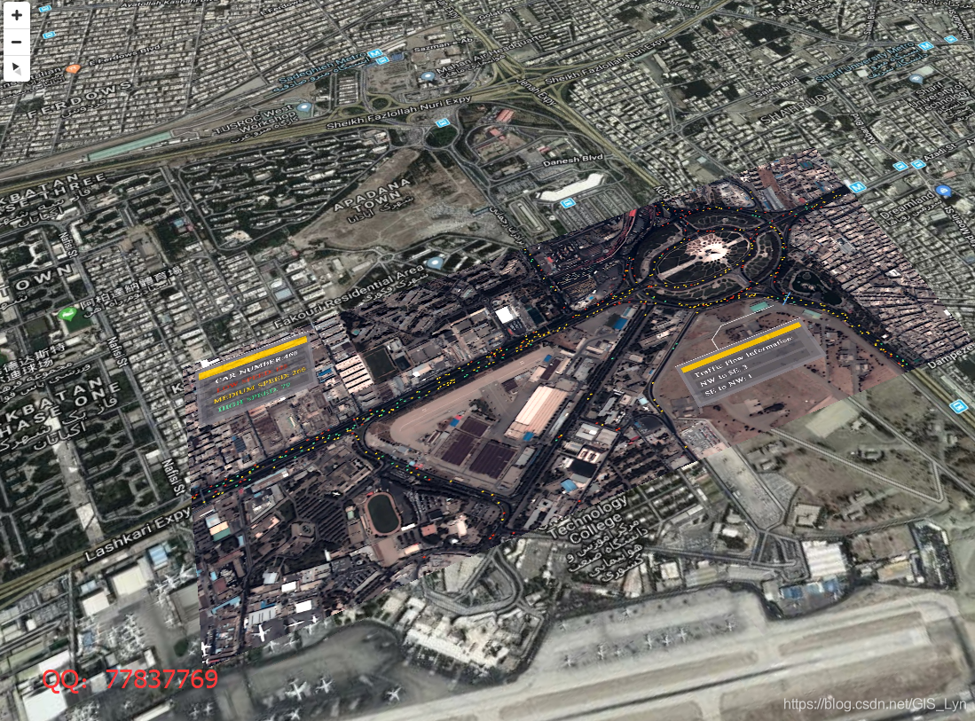 手上有一个交通分析结果视频,正射视角,来自遥感卫星视频,通过加工形成交通流量视频分析成果,现在需要把分析结果放在地图中进行可视化展示