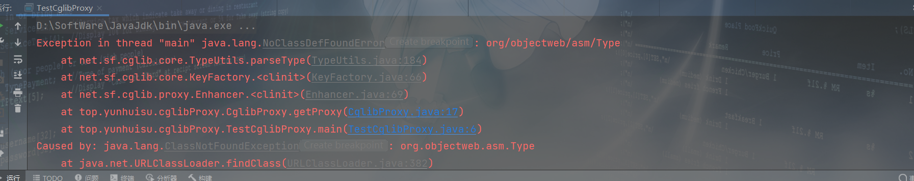 动态代理cglib常见的一些错误解决方案