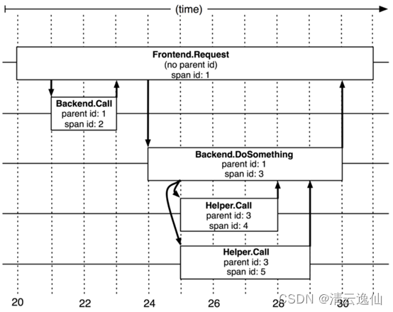 一次特定跟踪的所有相关 span 会共享同一个通用的trace id 。