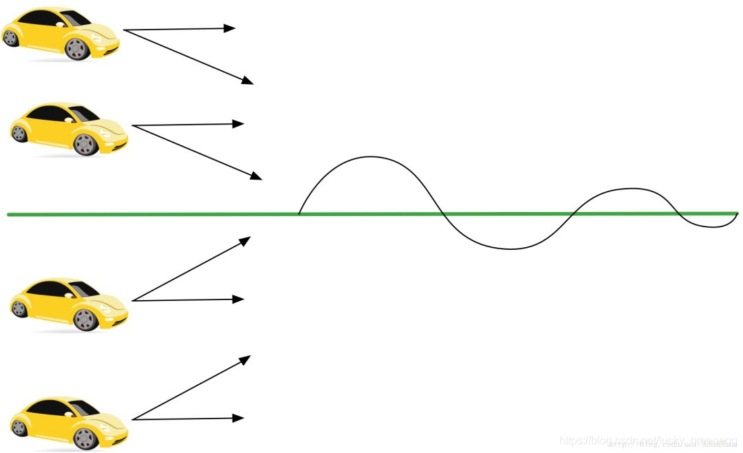 考虑一个简单的情况,假设我们希望无人车按照图中绿线行驶,但是我们的车在如图所示的位置: