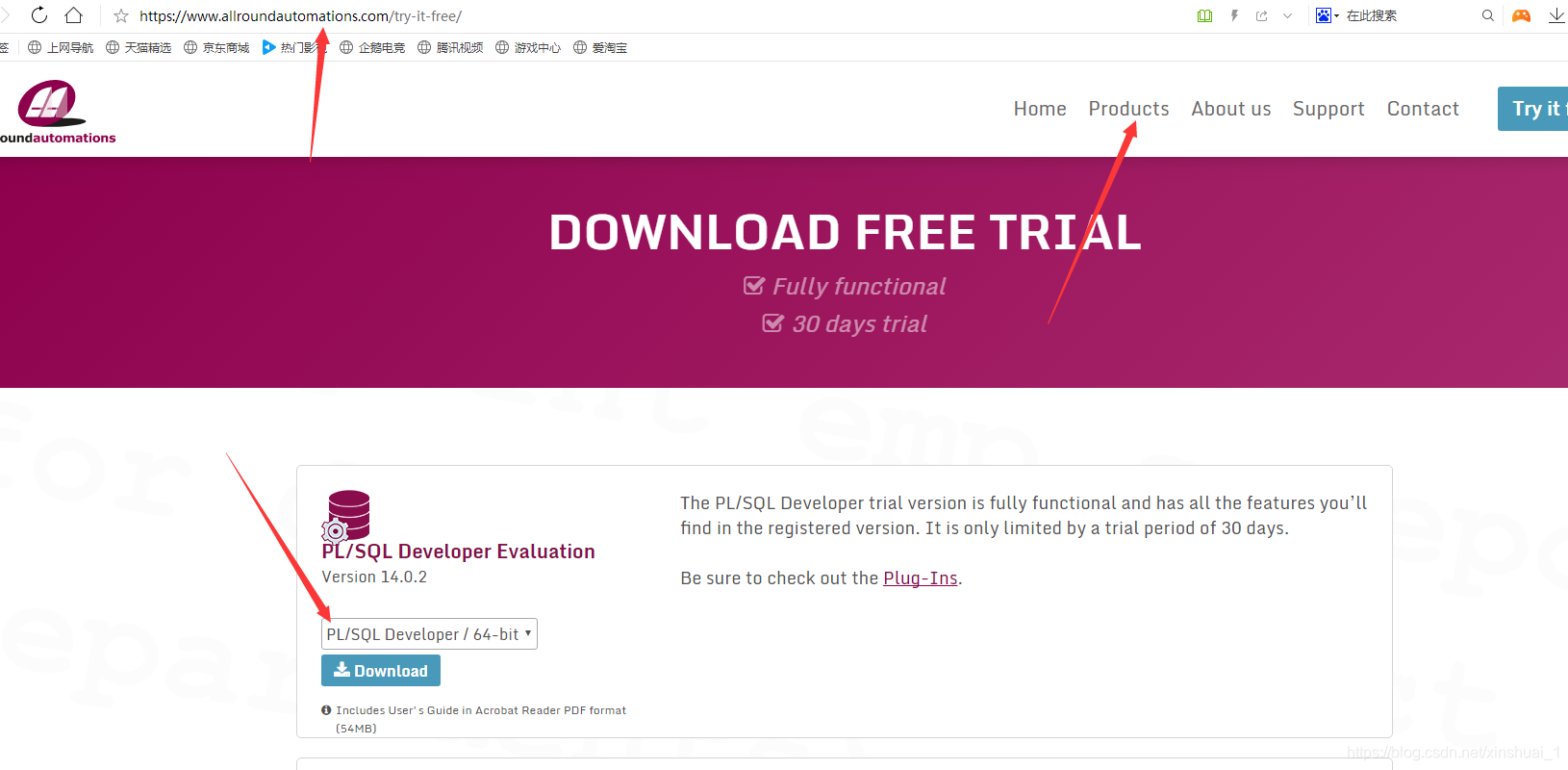 第二步 开始访问官方网址下载最新的plsql。参考如下图所示