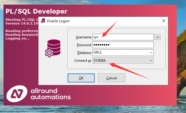 第六步 上一步双击打开如下,所示,输入用户名和密码,选择好角色,登录即可访问。参考如下。 如果此处在Database中没有选项,点击Cancel 取消后,会继续打开该页面,可参考下面的第八步。