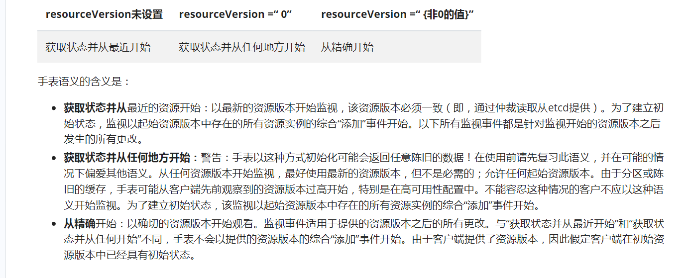 从文档推测,list和watch的resourceVersion语义的暗示都是一样的