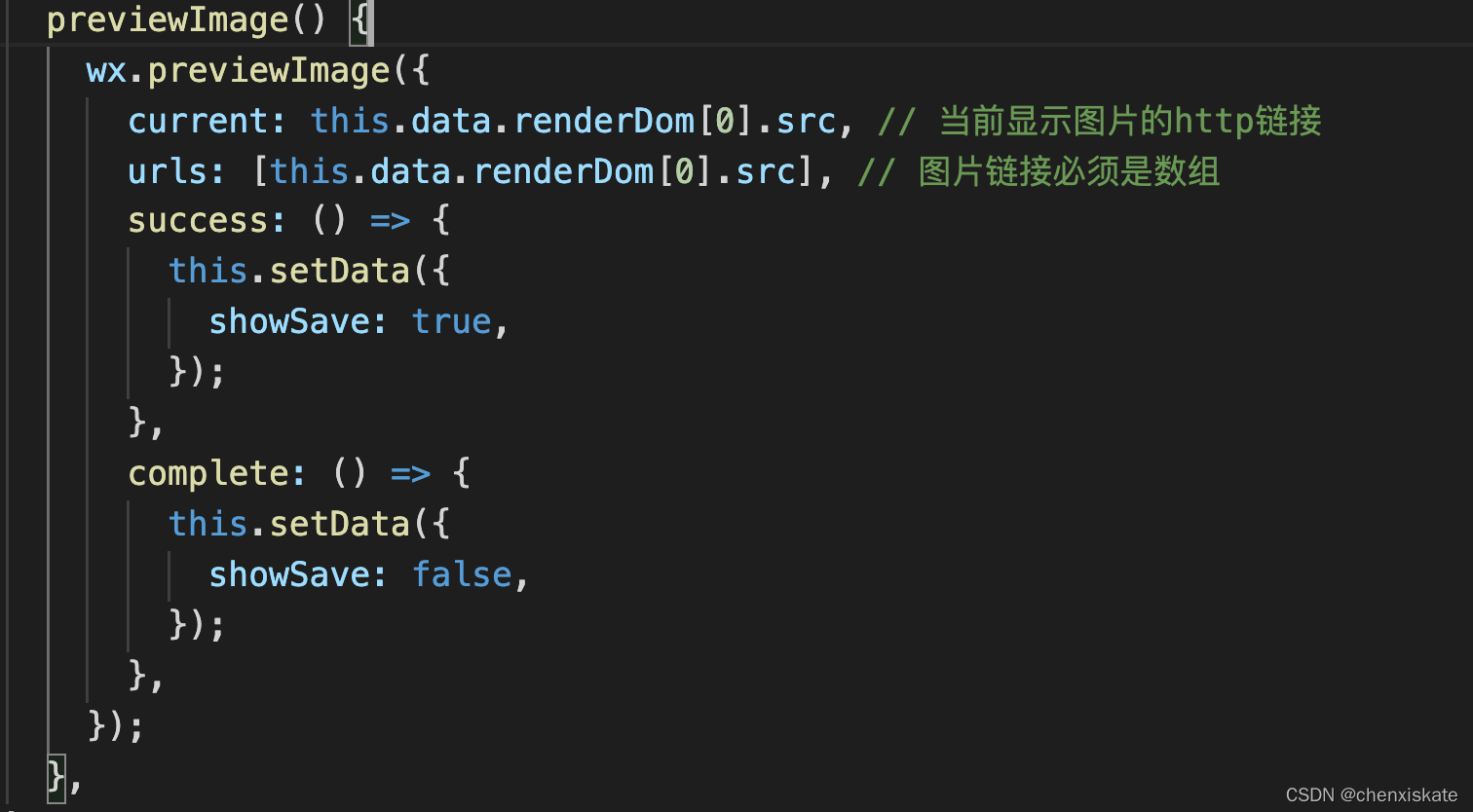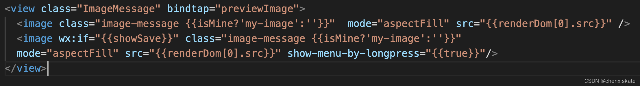 {true}}” 属性的组件渲染,这样就可以实现查看大图并支持长按保存了。代码片段如下