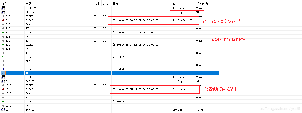 从 USB 的枚举过程 可知,下一步是获取设备描述符(真心实意的获取),这一部分与
