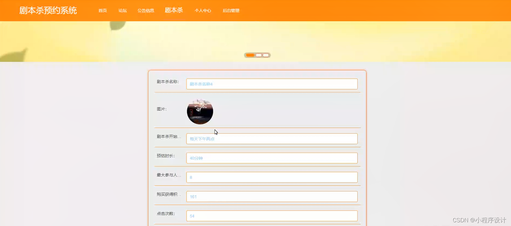用户端功能有:首页、剧本杀、论坛、公告信息、个人中心、后台管理