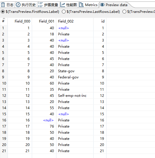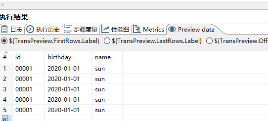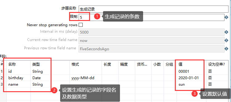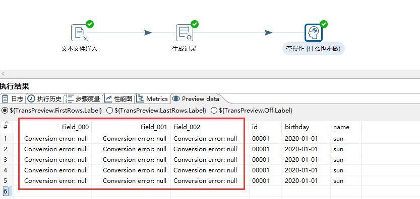 另外还有一点要注意,如果【生成记录】前面还有其他转换操作,前面的记录是无法正确读取的。