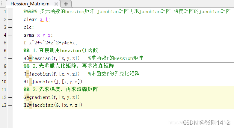 MATLAB下求解多元函数的hession矩阵(3种方法):