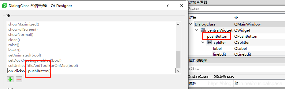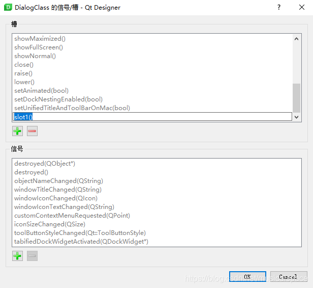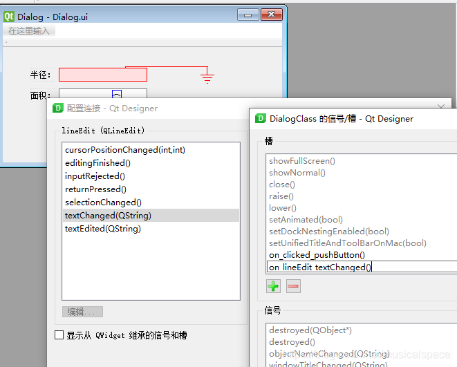 操作完成以后,会在信号/槽编辑器中看到添加的信息