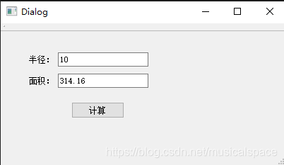 实现的功能: 当用户输入一个圆的半径后,点击计算可以显示计算后的圆的面积值。