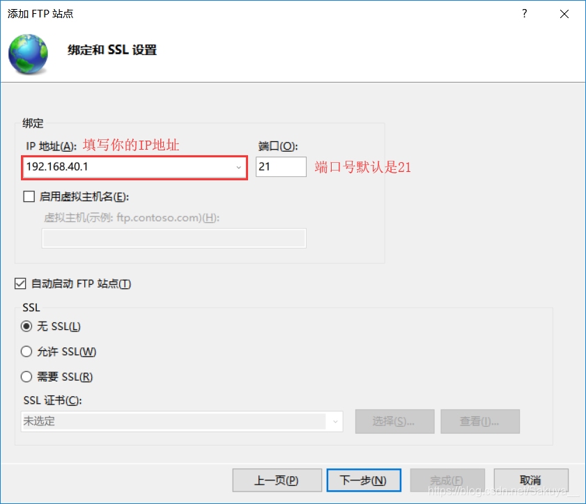 ,IP地址填写你自己电脑的IP地址,无SSL。
