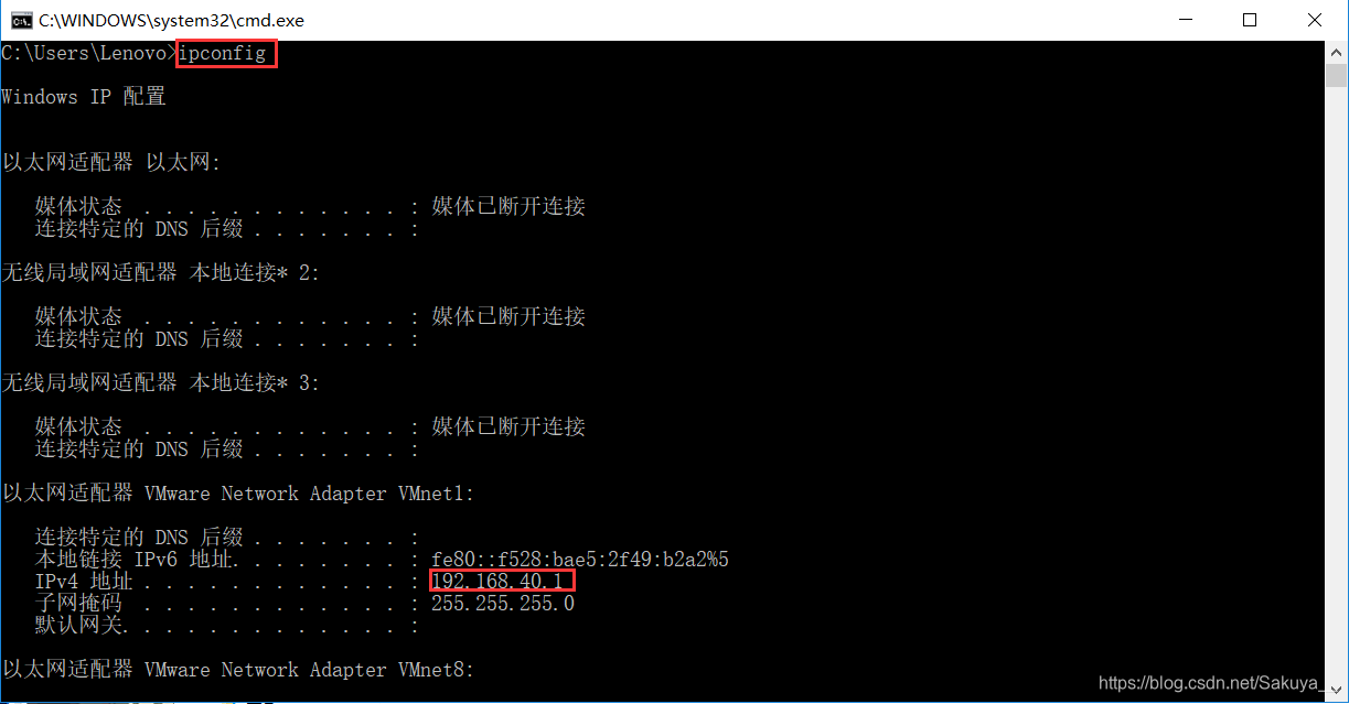 如果不知道自己电脑的IP地址可以在命令行中输入