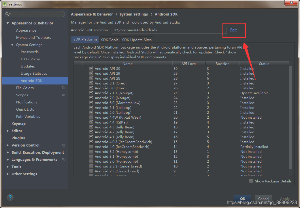 点击file——>setting——>Edit,然后一直next,最后finish,然后重启Androidstudio就可以了: