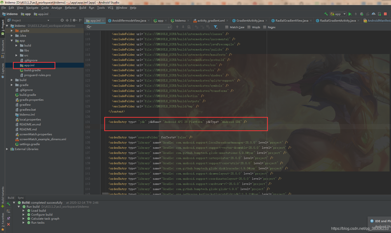 <orderEntry type= "jdk" jdkName= "Android API 28 Platform" jdkType= "Android SDK" />