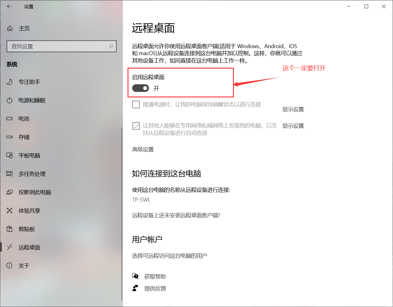 1.主机和虚拟机上的启用远程桌面一定要打开,否则连接不上;