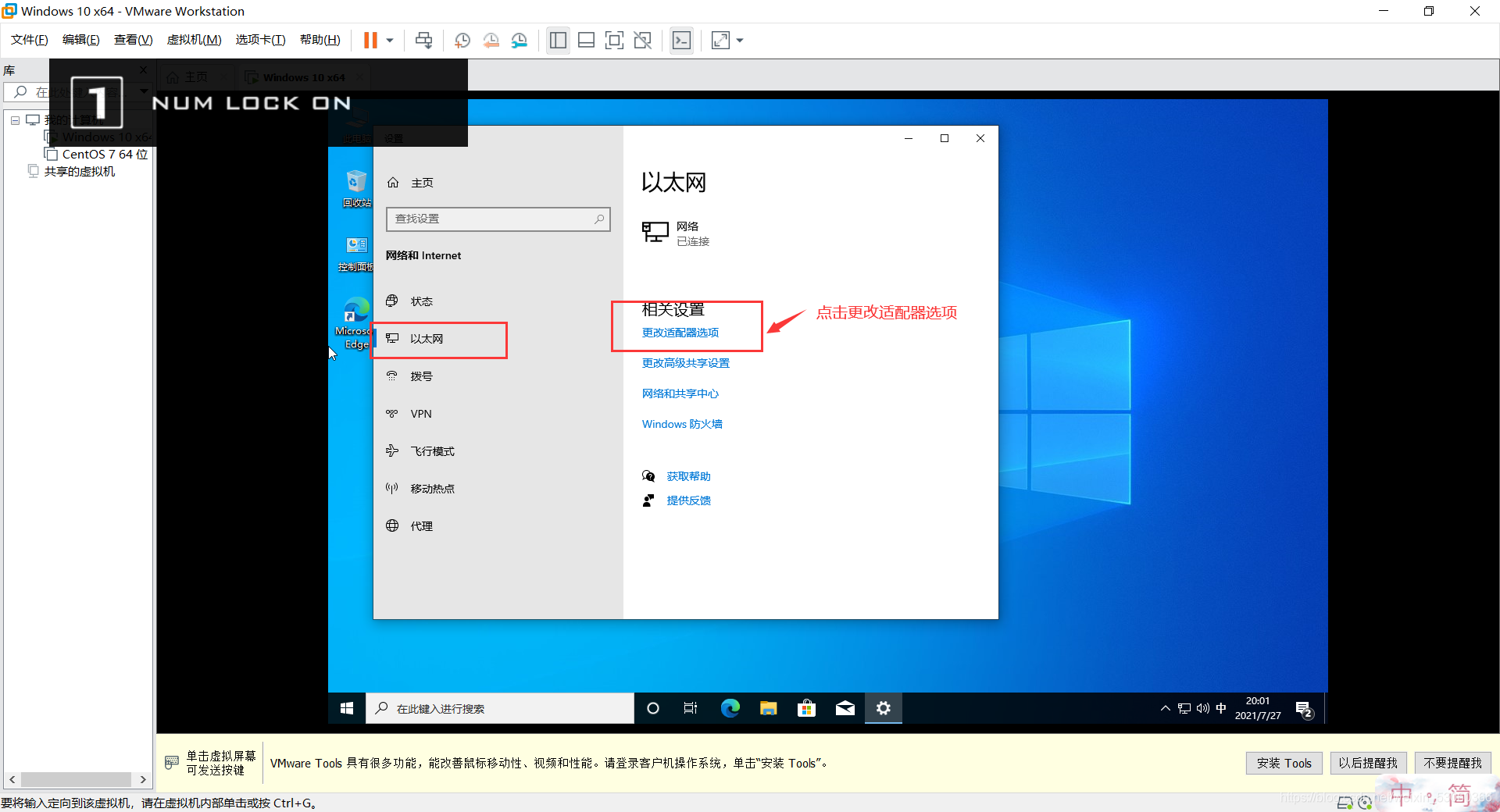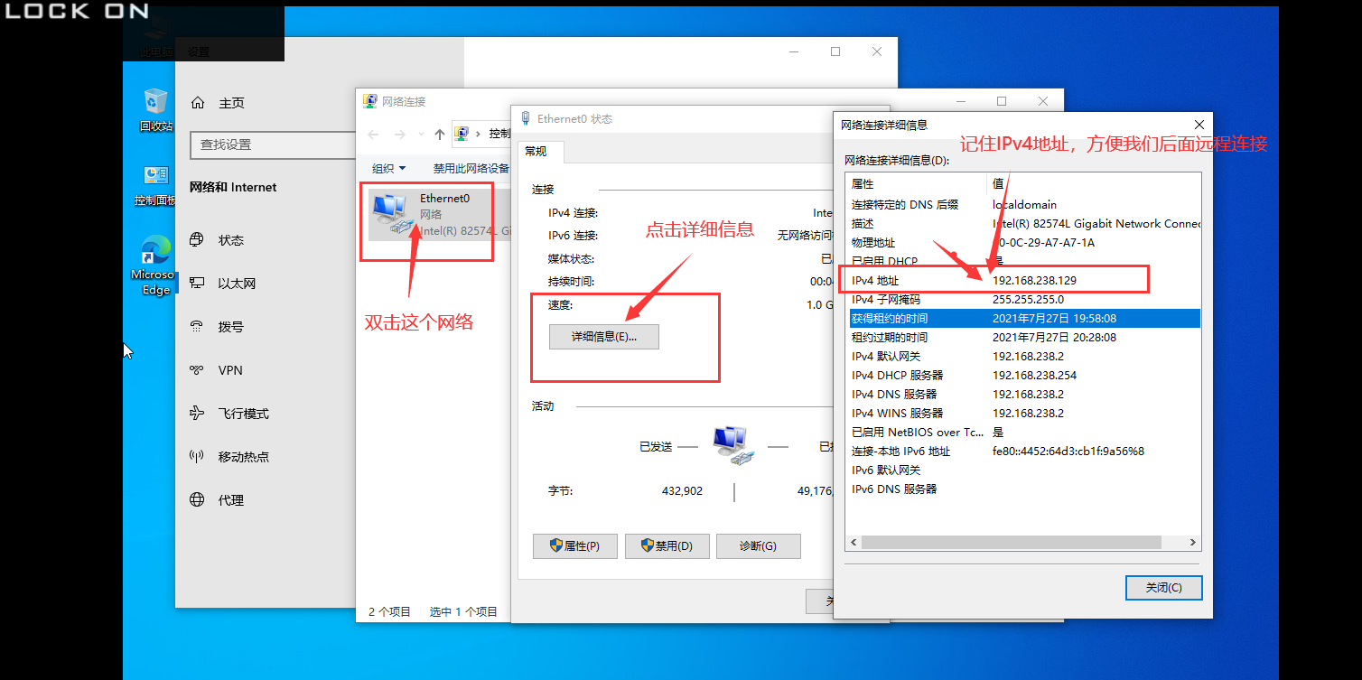 3.打开虚拟机的网络和internet设置,方便查看虚拟机的IP地址;